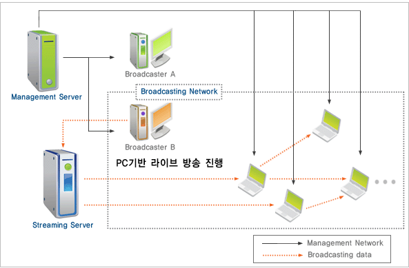 미디어 분산처리 솔루션을 적용하여, 고용량, 고화질의 영상을 실시간(LIVE)으로 방송을 할 수